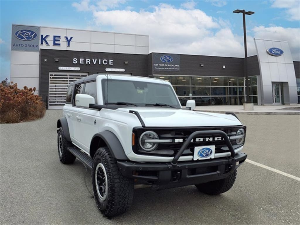 Key Ford of Rockland is proud to present you with another True Market Priced Pre-Owned Vehicle. Transparent Pricing Of $ 47810 !! This 2023 Ford Bronco Outer Banks Ford Gold Certified is loaded with the following Factory Options: Equipment Group 314A Lux Package (10 Speakers w/Subwoofer, 12" LCD Capacitive Touchscreen w/Swipe Capability, 2 Smart Charging USB Ports In Dashboard, 360-Degree Camera, Adaptive Cruise Control, Additional Sound Deadening, B&O Sound System by Bang & Olufsen, Connected Built-In NAVIGATION, Evasive Steering Assist, Front Parking Sensors, HEATED Steering Wheel, Information on Demand Panel, Sideview Mirrors, Universal Garage Door Opener, and Wireless Charging Pad), Sasquatch Package (High Clearance Fender Flares, High Clearance Suspension, Position-Sensitive Bilstein Shock Absorbers, and Wheels: 17" Black High Gloss-Painted Aluminum), Ford Gold Certified Certified, 18" Bright Machined Aluminum Wheels, 4-Wheel Disc Brakes, 7 Speakers, ABS brakes, Air Conditioning, Alloy wheels, AM/FM radio: SiriusXM with 360L, AM/FM Stereo, Auto High-beam Headlights, Auto-dimming Rear-View mirror, Automatic temperature control, Auxiliary Switches, Black Roof Rails w/Crossbars, Brake assist, Brush Guard, Carbonized Gray Molded-In-Color Hard Top, Compass, Connected Navigation, Delay-off headlights, Driver door bin, Driver vanity mirror, Dual front impact airbags, Dual front side impact airbags, Electronic Stability Control, Emergency communication system: 911 Assist, Exterior Parking Camera Rear, Ford Performance Heavy-Duty Modular Front Bumper, Front & Rear Floor Liners w/o Carpet Floor Mats, Front anti-roll bar, Front Bucket Seats, Front Center Armrest, Front dual zone A/C, Front fog lights, Front License Plate Bracket, Front reading lights, Front Row Top Panels Storage Bag, Front wheel independent suspension, Fully automatic headlights, Hard Top Sound Deadening Headliner, Heated door mirrors, Heated front seats, Heated Leather-Trimmed/Vinyl Bucket Seats, Illuminated entry, Integrated roll-over protection, Keyless Entry Keypad, Leather Shift Knob, Low tire pressure warning, Navigation system: Connected Navigation, Occupant sensing airbag, Outside temperature display, Overhead airbag, Overhead console, Panic alarm, Passenger door bin, Passenger vanity mirror, Power door mirrors, Power steering, Power windows, Radio data system, Rear-Window Defroster & Washer, Remote keyless entry, Security system, SiriusXM Radio w/360L, Speed control, Split folding rear seat, Steering wheel mounted audio controls, SYNC 4, Tachometer, Telescoping steering wheel, Tilt steeri