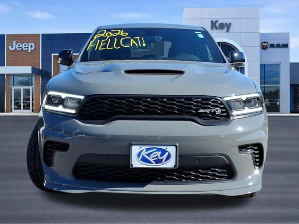 Key Chrysler Dodge Ram of Portsmouth is proud to present you with another True Market Priced Vehicle. This 2026 Dodge Durango SRT Hellcat is loaded with the following Factory Options: AWD 3rd Row Seating Group (3rd Row Remote Headrest Dumping, 3rd Row Seat, and 7-Passenger Seating), Quick Order Package 2XP Hellcat (Apex Hydro Interior Accents), AWD, 3.70 Rear Axle Ratio, 4-Wheel Disc Brakes, 9 Speakers, ABS brakes, Adaptive suspension, Air Conditioning, Alloy wheels, AM/FM radio: SiriusXM w/360L, Apple CarPlay/Android Auto, Audio memory, Auto-dimming door mirrors, Auto-dimming Rear-View mirror, Automatic temperature control, Black Alcantara Seats, Brake assist, Bumpers: body-color, Compass, Delay-off headlights, Driver door bin, Driver vanity mirror, Dual front impact airbags, Dual front side impact airbags, Electronic Stability Control, Emergency communication system: Dodge Connect, Four wheel independent suspension, Front anti-roll bar, Front Bucket Seats, Front Center Armrest w/Storage, Front dual zone A/C, Front reading lights, Fully automatic headlights, Garage door transmitter, Heated door mirrors, Heated front seats, Heated rear seats, Heated steering wheel, Illuminated entry, Knee airbag, Leather Shift Knob, Leather steering wheel, Leather Trimmed Bucket Seats, Low tire pressure warning, Manufacturer's Statement of Origin, Memory seat, Navigation System, Occupant sensing airbag, Outside temperature display, Overhead airbag, Overhead console, Panic alarm, ParkView Rear Back-Up Camera, Passenger door bin, Passenger vanity mirror, Power door mirrors, Power driver seat, Power Liftgate, Power passenger seat, Power steering, Power Sunroof, Power windows, Radio data system, Radio: Uconnect 5 Nav with 10.1" Display, Rain sensing wipers, Rear air conditioning, Rear anti-roll bar, Rear reading lights, Rear seat center armrest, Rear window defroster, Rear window wiper, Remote keyless entry, Security system, Speed control, Speed-sensing steering, Speed-Sensitive Wipers, Split folding rear seat, Spoiler, Sport steering wheel, Steering wheel mounted audio controls, Tachometer, Telescoping steering wheel, Tilt steering wheel, Traction control, Trip computer, Turn signal indicator mirrors, Variably intermittent wipers, Ventilated front seats, Voltmeter, and Wheels: 20" x 10" Machine Face with Dark Pockets!!