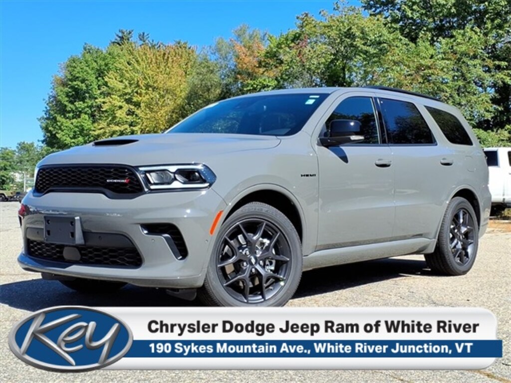 Key Chrysler Dodge Jeep Ram of White River is proud to present you with another True Market Priced Vehicle. This 2026 Dodge Durango GT is loaded with the following Factory Options: AWD Blacktop Package (Black Roof Rails, Gloss Black Badges, Gloss Black Exterior Mirrors, Integrated Roof Rail Crossbars, and Satin Black Dodge Tail Lamp Badge), Quick Order Package 22T GT Plus (115V Auxiliary Power Outlet, 7 & 4 Pin Wiring Harness, Adaptive Cruise Control w/Stop, Auto High Beam Headlamp Control, Auto-Dimming Exterior Driver Mirror, Blind Spot w/Trailer Detection, Class IV Receiver Hitch, Dual Remote USB Port - Charge Only, Exterior Mirrors w/Heating Element, Exterior Mirrors w/Memory, Exterior Mirrors w/Supplemental Signals, Floor Console w/Leather Armrest, Full Speed Forward Collision Warning Plus, Heated Second Row Seats, Leather Trimmed Bucket Seats, Leather Wrapped Door Panels, LED Auxiliary Low Beam & Turn Signal, Power 6x9 Multi-Function Foldaway Mirrors, Power 8-Way Driver Memory 8-Way Passenger Seats, Power Driver/Passenger 4-Way Lumbar Adjust, Power Sunroof, Power Tilt & Telescopic Steering Column, Radio/Driver Seat/Mirrors Memory, Red Accent Stitching, Trailer Brake Control, and Ventilated Front Seats), AWD, 3.09 Rear Axle Ratio, 3rd row seats: split-bench, 4-Wheel Disc Brakes, 9 Speakers, ABS brakes, Air Conditioning, Alloy wheels, AM/FM radio: SiriusXM w/360L, Apple CarPlay/Android Auto, Auto-dimming Rear-View mirror, Auto-leveling suspension, Automatic temperature control, Brake assist, Bumpers: body-color, Cloth Bucket Seats w/Shift Insert, Compass, Delay-off headlights, Driver door bin, Driver vanity mirror, Dual front impact airbags, Dual front side impact airbags, Electronic Stability Control, Emergency communication system: Dodge Connect, Four wheel independent suspension, Front anti-roll bar, Front Bucket Seats, Front Center Armrest w/Storage, Front dual zone A/C, Front License Plate Bracket, Front reading lights, Fully automatic headlights, Garage door transmitter, Heated door mirrors, Heated front seats, Heated steering wheel, Illuminated entry, Knee airbag, Leather steering wheel, Low tire pressure warning, Navigation System, Occupant sensing airbag, Outside temperature display, Overhead airbag, Overhead console, Panic alarm, ParkView Rear Back-Up Camera, Passenger door bin, Passenger vanity mirror, Power door mirrors, Power driver seat, Power Liftgate, Power steering, Power windows, Radio data system, Radio: Uconnect 5 Nav w/10.1" Display, Rain sensing wipers, Rear air conditioning, Rear anti-roll bar, Rear Load Leveling Suspension, Rear reading lights, Rear seat center armrest, Rear window defroster, Rear window wiper, Remote keyless entry, Security system, Speed control, Speed-sensing steering, Speed-Sensitive Wipers, Split folding rear seat, Spoiler, Sport steering wheel, Steering wheel mounted audio controls, Tachometer, Telescoping steering wheel, Tilt steering wheel, Traction control, Trip computer, Variably intermittent wipers, Voltmeter, Wheels: 20" x 8" Black Noise Split 5-Spoke, and Wheels: 20" x 8" Satin Carbon Split 5-Spoke!!