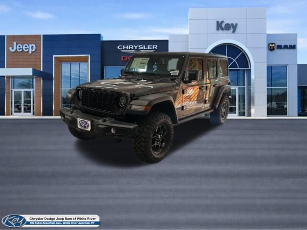 Key Chrysler Dodge Jeep Ram of White River is proud to present you with another True Market Priced Vehicle. This 2025 Jeep Wrangler Willys is loaded with the following Factory Options: Convenience Group (2-Door Passive Entry, Front Door Locks, Air Conditioning w/Auto Temperature Control, Air Filtering, Cluster 7.0" TFT Color Display, Emergency/Assistance Call, Heated Front Seats, Heated Steering Wheel, Remote Start System, and Universal Garage Door Opener), Quick Order Package 22W Willys (4-Wheel Drive Swing Gate Decal, 7 & 4 Pin Wiring Harness, 97 MPH Vehicle Max Speed Calibration, Advanced Brake Assist, Automatic Headlamps, Auxiliary Switches, Black Grille, Class II Receiver Hitch, Conventional Differential Front Axle, Corning Gorilla Glass, Dana M210 Wide HD Tube Front Axle, Dana M220 Wide Rear Axle, Daytime Running Lamps LED Accents, Deep Tint Sunscreen Windows, E-Locker Rear Axle, Enhanced Adaptive Cruise Control, Front LED Fog Lamps, Full Speed Forward Collision Warning Plus, Injection Molded Black Rear Bumper, LED Premium Reflector Headlamps, Mold In Color Bumper w/Gloss Black, Molded in Color Rubicon Highline Flare, MOPAR All-Weather Floor Mats, Off-Road Plus Mode, Power Heated Mirrors, Premium Wrapped Steering Wheel, Security Alarm, Sun Visors w/Illuminated Vanity Mirrors, Wheels: 17" x 7.5" Painted Black, Willy's Suspension, and Willys Hood Decal), Safety Group (Auto High Beam Headlamp Control, Blind Spot & Cross Path Detection, LED Taillamps, and ParkSense Rear Park Assist System), 110 MPH Vehicle Max Speed Calibration, 4-Wheel Disc Brakes, 8 Speakers, ABS brakes, Air Conditioning, AM/FM radio: SiriusXM, Apple CarPlay/Android Auto, Aux Battery, Black 3-Piece Hard Top, Brake assist, Cloth Low-Back Bucket Seats, Compass, Delay-off headlights, Driver door bin, Driver vanity mirror, Dual front impact airbags, Dual front side impact airbags, Electronic Stability Control, Freedom Panel Storage Bag, Front anti-roll bar, Front Bucket Seats, Front Center Armrest w/Storage, Front fog lights, Front reading lights, Illuminated entry, Integrated roll-over protection, Jeep Trail Rated Kit, Low tire pressure warning, Non-Lock Fuel Cap w/o Discriminator, Normal Duty Suspension, Occupant sensing airbag, Outside temperature display, Overhead airbag, Panic alarm, ParkView Rear Back-Up Camera, Passenger door bin, Passenger vanity mirror, Power steering, Power windows, Radio data system, Radio: Uconnect 5 w/12.3" Display, Rear anti-roll bar, Rear reading lights, Rear Window Defroster, Rear Window Wiper/Washer, Remote keyless entry, Speed control, Split folding rear seat, Steering wheel mounted audio controls, Stop-Start Dual Battery System, Tachometer, Telescoping steering wheel, Tilt steering wheel, Traction control, Trip computer, Variably intermittent wipers, and Wheels: 17" x 7.5" Black Steel Styled!!