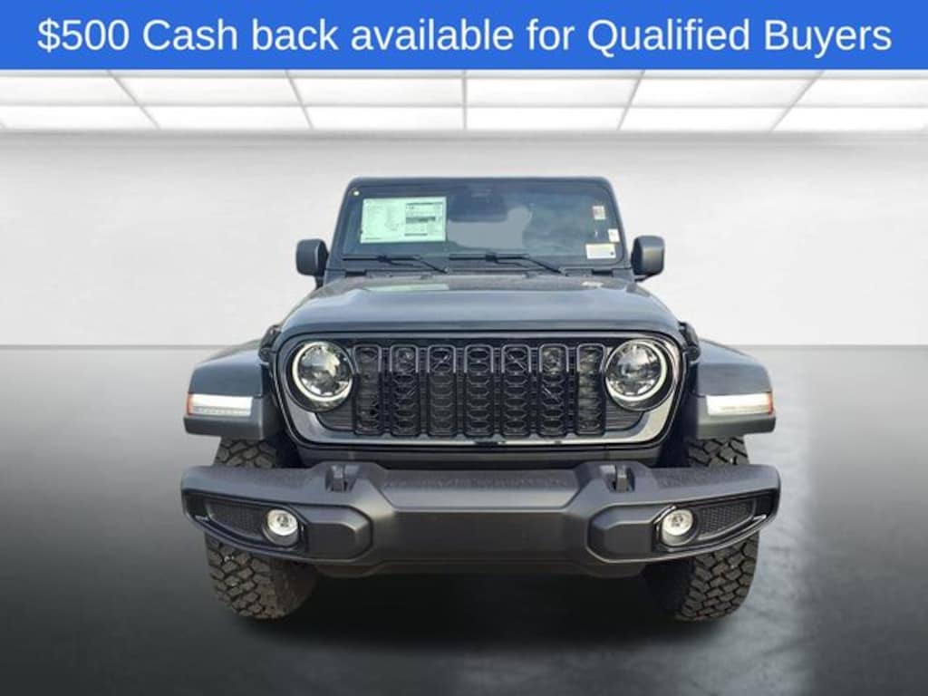 Key Chrysler Dodge Jeep Ram Newcastle is proud to present you with another True Market Priced Vehicle. This 2026 Jeep Gladiator Willys is loaded with the following Factory Options: Convenience Group (Air Conditioning with Auto Temp Control, Cluster 7.0" TFT Color Display, Corning Gorilla Glass, Daytime Running Lamp System, Emergency/Assistance Call, Front Door Locks 2-Door Passive Entry, Heated Front Seats, Heated Steering Wheel, Remote Start System, and Universal Garage Door Opener), Quick Order Package 24W Willys (2-Piece Body Color Fender Flares, 4-Wheel Drive Decal, Advanced Brake Assist, Automatic Headlamps, Auxiliary Switches, Black Grille, Class IV Receiver Hitch, Daytime Running Lamps LED Accents, Deep Tint Sunscreen Windows, E-Locker Rear Axle, Front Heavy Duty Red Accent Shock Absorbers, Front LED Fog Lamps, Full Speed Forward Collision Warning Plus, Heavy-Duty Engine Cooling, LED Premium Reflector Headlamps, LED Taillamps, Mold in Color Bumper with Gloss Black, MOPAR All-Weather Slush Mats, Off-Road Plus Mode, Power Heated Mirrors, Premium Wrapped Steering Wheel, Protection Sill Rails, Rear Heavy Duty Red Accent Shock Absorbers, Security Alarm, Sun Visors with Illuminated Vanity Mirrors, Trailer Hitch Zoom, Wheels: 17" x 7.5" Painted Black, Willys Hood Decal, and Willys Suspension), 110 Mph Vehicle Max Speed Calibration, 12.3" Touchscreen Display, 3.73 Rear Axle Ratio, 4-Wheel Disc Brakes, 4G LTE Wi-Fi Hot Spot, 8 Speakers, ABS brakes, Air Conditioning, Alexa Built-in, AM/FM radio: SiriusXM with 360L, Apple CarPlay, Apple CarPlay/Android Auto, Black 3-Piece Hard Top, Brake assist, Cloth Low-Back Bucket Seats, Compass, Connectivity - US/Canada, Delay-off headlights, Driver door bin, Driver vanity mirror, Dual front impact airbags, Dual front side impact airbags, Electronic Stability Control, Freedom Panel Storage Bag, Front anti-roll bar, Front Bucket Seats, Front Center Armrest w/Storage, Front fog lights, Front License Plate Bracket, Front reading lights, Google Android Auto, Illuminated entry, Integrated roll-over protection, Low tire pressure warning, Manufacturer's Statement of Origin, MOPAR Spray in Bedliner, Normal Duty Suspension, Occupant sensing airbag, Outside temperature display, Overhead airbag, Panic alarm, ParkView Rear Back-Up Camera, Passenger door bin, Passenger vanity mirror, Power steering, Power windows, Radio data system, Radio: Uconnect 5 with 12.3" Display, Rear anti-roll bar, Rear reading lights, Rear Sliding Window, Rear Window Defroster, Remote keyless entry, Speed control, Split folding rear seat, Steering wheel mounted audio controls, Tachometer, Telescoping steering wheel, Tilt steering wheel, Traction control, Trip computer, USB Host Flip, Variably intermittent wipers, Voltmeter, and Wheels: 17" x 7.5" Black Steel Styled!!