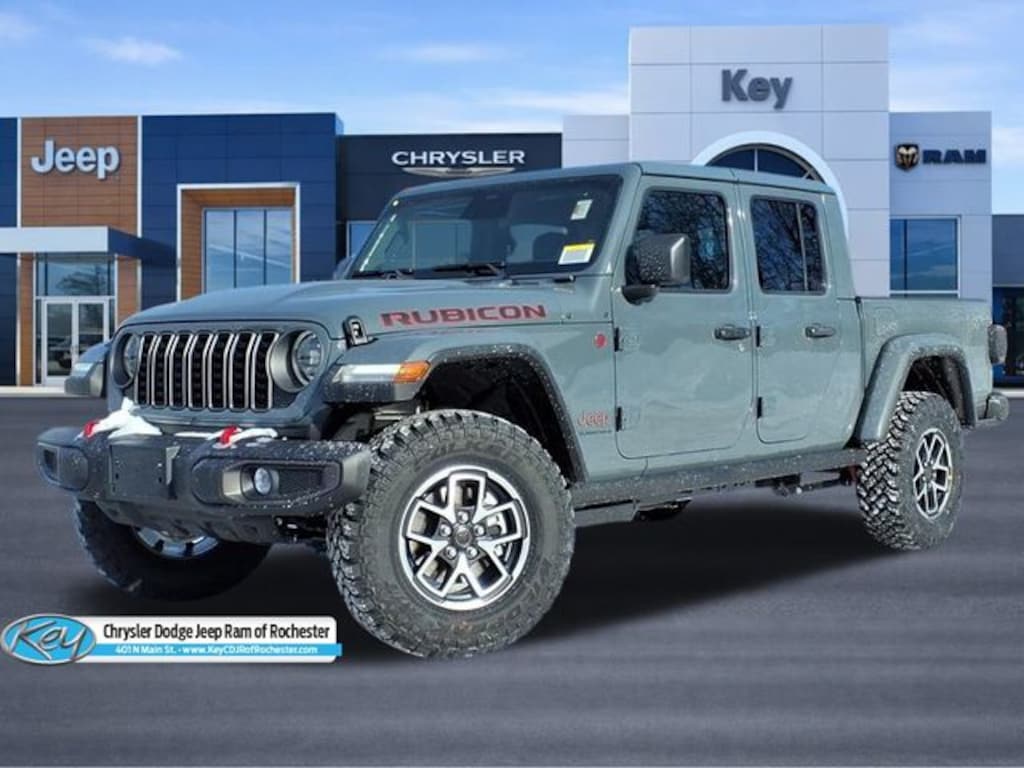 Key Chrysler Dodge Jeep Ram of Rochester is proud to present you with another True Market Priced Vehicle. This 2026 Jeep Gladiator Rubicon is loaded with the following Factory Options: Convenience Group (Heated Front Seats, Heated Steering Wheel, Remote Start System, and Universal Garage Door Opener), Quick Order Package 24R Rubicon, Steel Power Dome Hood Package (Power Dome Dual Vented Hood), 110 Mph Vehicle Max Speed Calibration, 12.3" Touchscreen Display, 4-Wheel Disc Brakes, 4.10 Rear Axle Ratio, 4G LTE Wi-Fi Hot Spot, 8 Speakers, ABS brakes, Air Conditioning, Alexa Built-in, Alloy wheels, Alpine Premium Audio System, AM/FM radio: SiriusXM with 360L, Apple CarPlay, Apple CarPlay/Android Auto, Automatic temperature control, Body Color 3-Piece Hard Top, Body Color Rubicon Highline Flare, Brake assist, Cloth Low-Back Bucket Seats, Compass, Connectivity - US/Canada, Delay-off headlights, Driver door bin, Driver vanity mirror, Dual front impact airbags, Dual front side impact airbags, Electronic Stability Control, Emergency communication system: Jeep Connect, Freedom Panel Storage Bag, Front anti-roll bar, Front Bucket Seats, Front Center Armrest w/Storage, Front dual zone A/C, Front fog lights, Front License Plate Bracket, Front reading lights, Fully automatic headlights, Google Android Auto, Heated door mirrors, Illuminated entry, Integrated roll-over protection, Low tire pressure warning, Manufacturer's Statement of Origin, Occupant sensing airbag, Outside temperature display, Overhead airbag, Panic alarm, Passenger door bin, Passenger vanity mirror, Performance Suspension, Power door mirrors, Power steering, Power windows, Radio data system, Radio: Uconnect 5 with 12.3" Display, Rear anti-roll bar, Rear reading lights, Rear Sliding Window, Rear Window Defroster, Remote keyless entry, Security system, Speed control, Split folding rear seat, Steering wheel mounted audio controls, Tachometer, Telescoping steering wheel, Tilt steering wheel, Traction control, Trip computer, USB Host Flip, Variably intermittent wipers, Voltmeter, and Wheels: 17" x 7.5" Machined/Painted Black!!