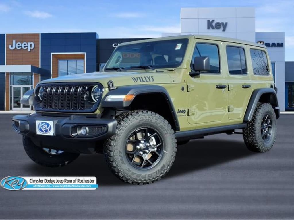 Key Chrysler Dodge Jeep Ram of Rochester is proud to present you with another True Market Priced Vehicle. This 2026 Jeep Wrangler Willys is loaded with the following Factory Options: Convenience Group (2-Door Passive Entry, Front Door Locks, Air Conditioning with Auto Temp Control, Air Filtering, Cluster 7.0" TFT Color Display, Emergency/Assistance Call, Heated Front Seats, Heated Steering Wheel, and Universal Garage Door Opener), Quick Order Package 24W Willys (4-Wheel Drive Swing Gate Decal, 7 and 4 Pin Wiring Harness, Advanced Brake Assist, Automatic Headlamps, Auxiliary Switches, Black Grille with Gloss Black Rings, Class II Receiver Hitch, Conventional Differential Front Axle, Corning Gorilla Glass, Dana M210 Wide HD Tube Front Axle, Dana M220 Wide Rear Axle, Daytime Running Lamps LED Accents, Deep Tint Sunscreen Windows, E-Locker Rear Axle, Enhanced Adaptive Cruise Control, Front LED Fog Lamps, Full Speed Forward Collision Warning Plus, Increased Travel Export Tuned Suspension, Injection Molded Black Rear Bumper, LED Premium Reflector Headlamps, Mold in Color Bumper with Gloss Black, Molded in Color Rubicon Highline Flare, MOPAR All-Weather Floor Mats, Off-Road Plus Mode, Power Heated Mirrors, Premium Wrapped Steering Wheel, Security Alarm, Sun Visors with Illuminated Vanity Mirrors, Wheels: 17" x 7.5" Painted Black, and Willys Hood Decal), Safety Group (Auto High Beam Headlamp Control, Blind Spot and Cross Path Detection, LED Taillamps, and ParkSense Rear Park Assist System), 12.3" Touchscreen Display, 4-Wheel Disc Brakes, 4G LTE Wi-Fi Hot Spot, 8 Speakers, ABS brakes, Air Conditioning, AM/FM radio: SiriusXM with 360L, Apple CarPlay, Apple CarPlay/Android Auto, Aux Battery, Brake assist, Compass, Connectivity - US/Canada, Delay-off headlights, Driver door bin, Driver vanity mirror, Dual front impact airbags, Dual front side impact airbags, Electronic Stability Control, For More Info, Call 800-643-2112, Front anti-roll bar, Front Bucket Seats, Front Center Armrest w/Storage, Front fog lights, Front reading lights, Google Android Auto, Illuminated entry, Integrated Center Stack Radio, Integrated roll-over protection, Low tire pressure warning, Manufacture Statement of Origin, Non-Lock Fuel Cap Without Discriminator, Normal Duty Suspension, Occupant sensing airbag, Outside temperature display, Overhead airbag, Panic alarm, ParkView Rear Back-Up Camera, Passenger door bin, Passenger vanity mirror, Power steering, Power Top Quarter Window Storage Bag, Power windows, Radio data system, Radio: Uconnect 5 with 12.3" Display, Rear anti-roll bar, Rear reading lights, Rear Window Defroster, Rear Window Wiper/Washer, Remote keyless entry, Removable Rear Quarter Windows, SiriusXM Radio Service, SiriusXM with 360L, Sky One-Touch Power Top, Speed control, Split folding rear seat, Steering wheel mounted audio controls, Stop-Start Dual Battery System, Tachometer, Telescoping steering wheel, Tilt steering wheel, Traction control, Trip computer, Variably intermitten Call us to ask about conditional rebates. Price includes: $1000 - 2026 National Retail Bonus Cash . Exp. 04/30/2026 $3500 - 2026 National Select Inventory Bonu