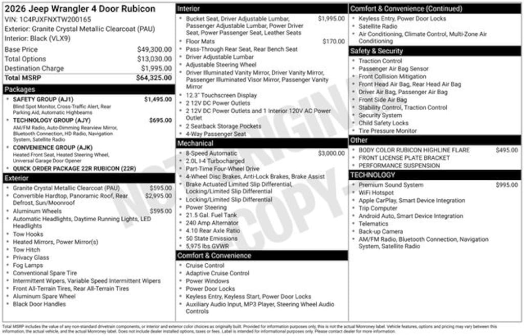 2026 Jeep Wrangler Rubicon Granite Crystal Metallic Clearcoat We believe there is more to buying a vehicle than worrying about the price. For that reason, Key Auto has simplified that process for our customers. When we price a vehicle, we take the following into consideration: