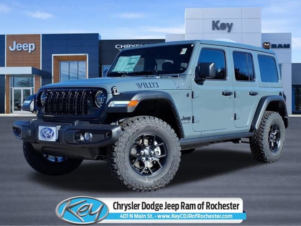 Key Chrysler Dodge Jeep Ram of Rochester is proud to present you with another True Market Priced Vehicle. This 2026 Jeep Wrangler Willys is loaded with the following Factory Options: Convenience Group (2-Door Passive Entry, Front Door Locks, Air Conditioning with Auto Temp Control, Air Filtering, Cluster 7.0" TFT Color Display, Emergency/Assistance Call, Heated Front Seats, Heated Steering Wheel, and Universal Garage Door Opener), Quick Order Package 24W Willys (4-Wheel Drive Swing Gate Decal, 7 and 4 Pin Wiring Harness, Advanced Brake Assist, Automatic Headlamps, Auxiliary Switches, Black Grille with Gloss Black Rings, Class II Receiver Hitch, Conventional Differential Front Axle, Corning Gorilla Glass, Dana M210 Wide HD Tube Front Axle, Dana M220 Wide Rear Axle, Daytime Running Lamps LED Accents, Deep Tint Sunscreen Windows, Electronic Locker Rear Axle, Enhanced Adaptive Cruise Control, Front LED Fog Lamps, Full Speed Forward Collision Warning Plus, Injection Molded Black Rear Bumper, LED Premium Reflector Headlamps, Mold in Color Bumper with Gloss Black, Molded in Color Rubicon Highline Flare, MOPAR All-Weather Floor Mats, Off-Road Plus Mode, Power Heated Mirrors, Premium Wrapped Steering Wheel, Security Alarm, Sun Visors with Illuminated Vanity Mirrors, Wheels: 17" x 7.5" Painted Black, Willys Hood Decal, and Willys Suspension), Safety Group (Auto High Beam Headlamp Control, Blind Spot and Cross Path Detection, LED Taillamps, and ParkSense Rear Park Assist System), 12.3" Touchscreen Display, 4-Wheel Disc Brakes, 4G LTE Wi-Fi Hot Spot, 8 Speakers, ABS brakes, Air Conditioning, AM/FM radio: SiriusXM with 360L, Apple CarPlay, Apple CarPlay/Android Auto, Aux Battery, Brake assist, Compass, Connectivity - US/Canada, Delay-off headlights, Driver door bin, Driver vanity mirror, Dual front impact airbags, Dual front side impact airbags, Electronic Stability Control, For More Info, Call 800-643-2112, Front anti-roll bar, Front Bucket Seats, Front Center Armrest w/Storage, Front fog lights, Front reading lights, Google Android Auto, Illuminated entry, Integrated Center Stack Radio, Integrated roll-over protection, Low tire pressure warning, Manufacture Statement of Origin, Non-Lock Fuel Cap Without Discriminator, Normal Duty Suspension, Occupant sensing airbag, Outside temperature display, Overhead airbag, Panic alarm, ParkView Rear Back-Up Camera, Passenger door bin, Passenger vanity mirror, Power steering, Power Top Quarter Window Storage Bag, Power windows, Radio data system, Radio: Uconnect 5 with 12.3" Display, Rear anti-roll bar, Rear reading lights, Rear Window Defroster, Rear Window Wiper/Washer, Remote keyless entry, Removable Rear Quarter Windows, SiriusXM Radio Service, SiriusXM with 360L, Sky One-Touch Power Top, Speed control, Split folding rear seat, Steering wheel mounted audio controls, Stop-Start Dual Battery System, Tachometer, Telescoping steering wheel, Tilt steering wheel, Traction control, Trip computer, Variably intermittent Call us to ask about conditional rebates. Price includes: $1000 - 2026 National Retail Bonus Cash . Exp. 04/30/2026 $3500 - 2026 National Select Inventory Bonu