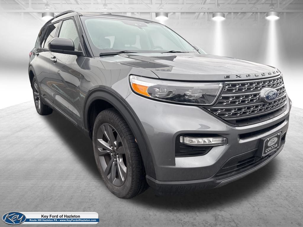 KEY FORD OF HAZLETON is proud to present you with another True Market Priced Pre-Owned Vehicle. Transparent Pricing Of $ 34499 !! This 2023 Ford Explorer XLT Ford Blue Advantage: Blue Certified is loaded with the following Factory Options: 4WD Class IV Trailer Tow Package, Equipment Group 202A (Acoustic-Laminated Front Side Windows, Heated ActiveX Captain's Chairs, Heated Steering Wheel, LED Fog Lamps, Remote Start System, and SecuriCode Keyless Entry Keypad), XLT Sport Appearance Package (Dual Chrome Exhaust Tips and Wheels: 20" 10-Spoke Carbonized Gray-Painted), Ford Blue Advantage: Blue Certified Certified, 4WD, 3.58 Non-Limited-Slip Rear Axle Ratio, 3rd row seats: bench, 4-Wheel Disc Brakes, 4G LTE Wi-Fi Hotspot Credit, 6 Speakers, ABS brakes, Air Conditioning, Alloy wheels, AM/FM radio: SiriusXM, AM/FM Stereo, Auto High-beam Headlights, Automatic temperature control, Brake assist, Bumpers: body-color, Compass, Delay-off headlights, Driver door bin, Driver vanity mirror, Dual front impact airbags, Dual front side impact airbags, Electronic Stability Control, Emergency communication system: SYNC 3 911 Assist, Exterior Parking Camera Rear, FordPass Connect, Four wheel independent suspension, Front & Second Row Floor Liners (16B), Front anti-roll bar, Front Bucket Seats, Front Center Armrest, Front dual zone A/C, Front reading lights, Fully automatic headlights, Heated door mirrors, Heated front seats, Heated Unique Cloth Captain's Chairs, Illuminated entry, Knee airbag, Leather steering wheel, Low tire pressure warning, Occupant sensing airbag, Outside temperature display, Overhead airbag, Overhead console, Panic alarm, Passenger door bin, Passenger vanity mirror, Power door mirrors, Power driver seat, Power Liftgate, Power passenger seat, Power steering, Power windows, Rear air conditioning, Rear anti-roll bar, Rear reading lights, Rear window defroster, Rear window wiper, Remote keyless entry, Roof rack: rails only, Security system, Speed control, Speed-sensing steering, Speed-Sensitive Wipers, Split folding rear seat, Spoiler, Steering wheel mounted audio controls, SYNC 3 Communications & Entertainment System, SYNC 3/Apple CarPlay/Android Auto, Tachometer, Telescoping steering wheel, Tilt steering wheel, Traction control, Trip computer, Variably intermittent wipers, and Wheels: 18" 5-Spoke Silver-Painted Aluminum!!