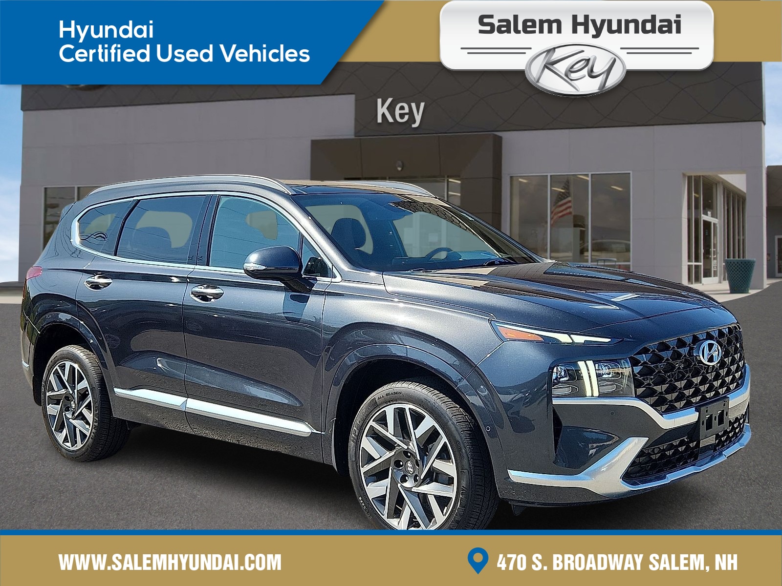 Bodystyle: SUV, Engine: 2.5L I-4 cyl, Transmission: Automatic, Drive Line: All-Wheel Drive, Mileage: 35,439 miles miles, MPG Range: 21/28 mpg, Exterior Color: Portofino Gray, Interior Color: Black,Stock #: K7929, VIN: 5NMS5DALXPH577512, Model Code: 644H2AT5, Comments: "2023 Hyundai Santa Fe Calligraphy Calligraphy1-Owner Clean CarFax Hyundai Certified Pre Owned AWD Black Leather Apple CarPlay & Android Auto Heated & Ventilated Front Bucket Seats Power Liftgate Power moonroof Radio: AM/FM Harman Kardon Display Audio. This Santa Fe Calligraphy is nicely equipped with Option Group 01 Hyundai Certified Used Vehicles Certified AWD Black Leather Apple CarPlay & Android Auto Heated & Ventilated Front Bucket Seats Power Liftgate Power moonroof Radio: AM/FM Harman Kardon Display Audio 12 Speakers 4-Wheel Disc Brakes ABS brakes Air Conditioning AM/FM radio: SiriusXM Auto High-beam Headlights Auto-dimming Rear-View mirror Automatic temperature control Axle Ratio: 3.316 Brake assist Bumpers: body-color Cargo Net Cargo Tray Carpeted Floor Mats Delay-off headlights Driver door bin Driver vanity mirror Dual front impact airbags Dual front side impact airbags Electronic Stability Control Emergency communication system Exterior Parking Camera Rear Four wheel independent suspension Front anti-roll bar Front dual zone A/C Front reading lights Fully automatic headlights Garage door transmitter: HomeLink Heads-Up Display Heated door mirrors Heated rear seats Heated steering wheel Illuminated entry Leather steering wheel Low tire pressure warning Memory seat Mudguards Navigation System Occupant sensing airbag Outside temperature display Overhead airbag Overhead console Panic alarm Passenger door bin Passenger vanity mirror Power door mirrors Power driver seat Power passenger seat Power steering Power windows Quilted Premium Nappa Leather Seat Trim Rain sensing wipers Rear anti-roll bar Rear seat center armrest Rear window defroster Rear window wiper Remote keyless entry Roof Rack Cross Bars (DISC) Security system Speed control Speed-sensing steering Split folding rear seat Spoiler Steering wheel mounted audio controls Tachometer Telescoping steering wheel Tilt steering wheel Traction control Trip computer Turn signal indicator mirrors Variably intermittent wipers and Wheels: 20""x 8.0J Alloy.Hyundai Certified Used Vehicles Details:  * Vehicle History  * Powertrain Limited Warranty: 120 Month/100000 Mile (whichever comes first) from original in-service date  * Limited Warranty: 60 Month/60000 Mile (whichever comes first) from original in-service date  * 173+ Point Inspection  * Includes 10-year/Unlimited Mileage Roadside Assistance with Rental Car and Trip Interruption Reimbursement; Please See Dealers for Specific Vehicle Eligibility Requirements. 10-Year/100000 Mile Hybrid/EV Battery Warranty. 3-Months SiriusXM Trial Subscription. Complimentary 1 Year (Connected Care & Remote Pkgs).  * Roadside Assistance  * Warranty Deductible: $50Call 603-841-3099 to schedule your contact free test drive today!"