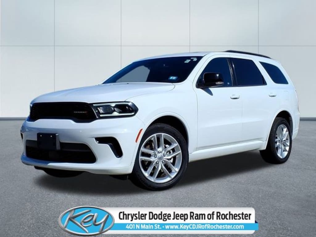 Key Chrysler Dodge Jeep Ram of Rochester is proud to present you with another True Market Priced Pre-Owned Vehicle. Transparent Pricing Of $ 31250 !! This 2024 Dodge Durango GT Plus is loaded with the following Factory Options: Quick Order Package 2BG GT Plus (1-Year Trial (Registration Required), 10.1" Touchscreen Display, 115V Auxiliary Power Outlet, 180 Amp Alternator, 4G LTE Wi-Fi Hot Spot, 7 & 4 Pin Wiring Harness, Adaptive Cruise Control w/Stop, Apple CarPlay, Auto-Dimming Exterior Driver Mirror, Black Roof Rails, Blind Spot w/Trailer Detection, Class IV Receiver Hitch, Connected Travel & Traffic Services, Disassociated Touchscreen Display, Dual Remote USB Port - Charge Only, Exterior Mirrors w/Heating Element, Exterior Mirrors w/Memory, Exterior Mirrors w/Supplemental Signals, Floor Console w/Leather Armrest, For Details Visit DriveUconnect.com, Full Speed Forward Collision Warning Plus, Global Telematics Box Module (TBM), Gloss Black Exterior Mirrors, Google Android Auto, GPS Antenna Input, GPS Navigation, HD Radio, Heated Second Row Seats, Heavy-Duty Engine Cooling, Integrated Center Stack Radio, Integrated Roof Rail Crossbars, Integrated Voice Command w/Bluetooth, Leather Trimmed Bucket Seats, Leather Wrapped Door Panels, LED Auxiliary Low Beam & Turn Signal, Power 6x9 Multi-Function Foldaway Mirrors, Power 8-Way Driver Memory 8-Way Passenger Seats, Power Driver/Passenger 4-Way Lumbar Adjust, Power Sunroof, Power Tilt & Telescopic Steering Column, Radio: Uconnect 5 Nav w/10.1" D