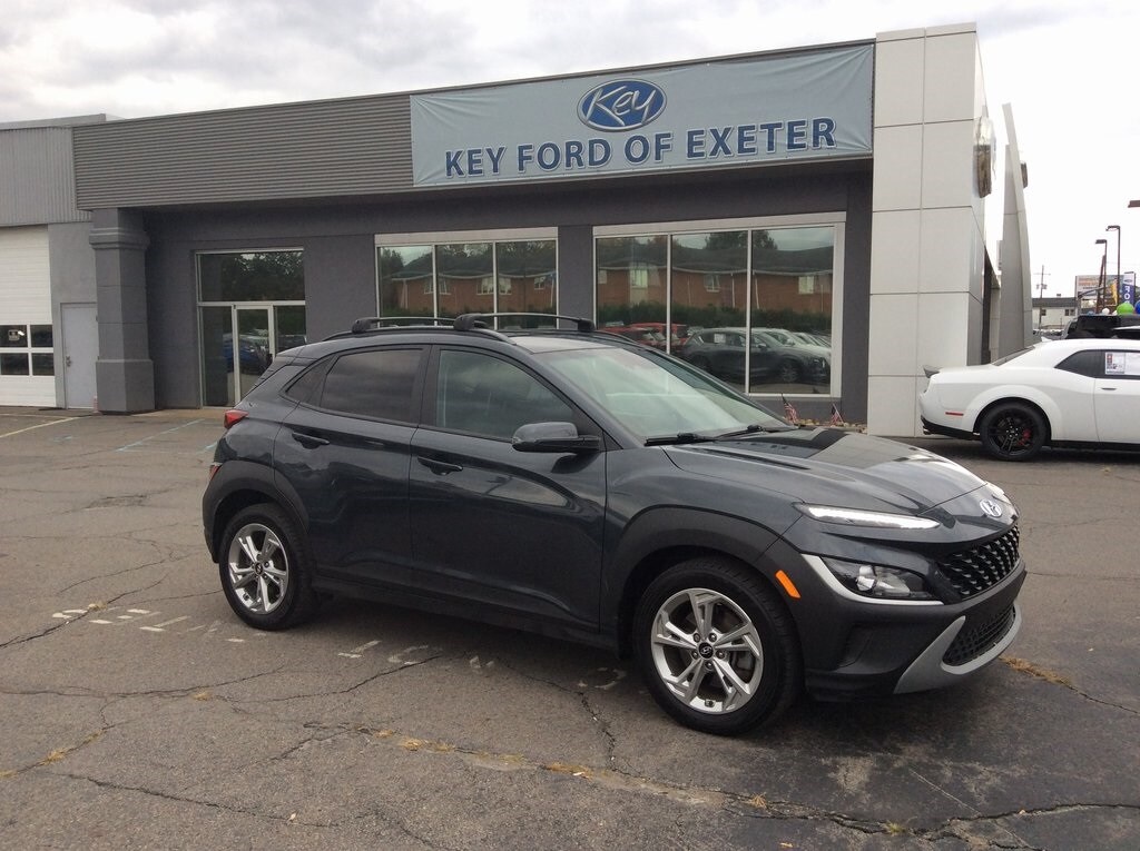 Call Key Ford of Exeter at 272-260-3194 to schedule a test drive today! This Kona SEL is nicely equipped with Option Group 01, 4-Wheel Disc Brakes, 5.715 Axle Ratio, 6 Speakers, ABS brakes, Air Conditioning, Alloy wheels, AM/FM radio: SiriusXM, Apple CarPlay & Android Auto, Brake assist, Bumpers: body-color, Carpeted Floor Mats, Cloth Seat Trim, Delay-off headlights, Driver door bin, Driver vanity mirror, Dual front impact airbags, Dual front side impact airbags, Electronic Stability Control, Emergency communication system: Blue Link Connected Car Service (3-year complimentary subscription), Exterior Parking Camera Rear, Four wheel independent suspension, Front & Rear Mudguards, Front anti-roll bar, Front Bucket Seats, Front Center Armrest, Front reading lights, Fully automatic headlights, Heated door mirrors, Illuminated entry, Low tire pressure warning, Occupant sensing airbag, Overhead airbag, Overhead console, Panic alarm, Passenger door bin, Passenger vanity mirror, Power door mirrors, Power steering, Power windows, Radio: AM/FM/HD Radio/SiriusXM Audio System, Rear anti-roll bar, Rear seat center armrest, Rear window defroster, Rear window wiper, Remote keyless entry, Roof Rack Cross Rails, Security system, Speed control, Speed-sensing steering, Split folding rear seat, Spoiler, Steering wheel mounted audio controls, Tachometer, Telescoping steering wheel, Tilt steering wheel, Traction control, Trip computer, Turn signal indicator mirrors, Variably intermittent wipers, Wheel Locks, and Wheels: 17 x 7.0J Alloy.