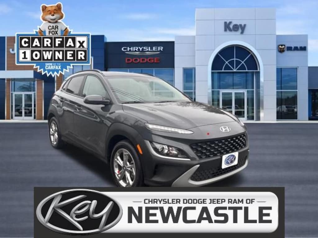 Key Chrysler Dodge Jeep Ram Newcastle is proud to present you with another True Market Priced Pre-Owned Vehicle. Transparent Pricing Of $ 22999 !! This 2023 Hyundai Kona SEL is loaded with the following Factory Options: Cargo Package (Cargo Blocks, Cargo Net, and Cargo Tray), Convenience Package (Automatic Temperature Control, Heated Front Seats, Hidden Cargo-Area Storage Compartment, Hyundai Digital Key, Leather-Wrapped Shift Knob, Leather-Wrapped Steering Wheel, Option Group 02, Power Tilt-and-Slide Sunroof, Radio: AM/FM/SiriusXM/HD Audio System, and Wireless Device Charging), 17" x 7.0J Alloy Wheels, 4-Wheel Disc Brakes, 5.715 Axle Ratio, 6 Speakers, ABS brakes, Air Conditioning, Alloy wheels, AM/FM radio: SiriusXM, Apple CarPlay & Android Auto, Brake assist, Bumpers: body-color, Carpeted Floor Mats, Cloth Seat Trim, Delay-off headlights, Driver door bin, Driver vanity mirror, Dual front impact airbags, Dual front side impact airbags, Electronic Stability Control, Emergency communication system: Blue Link Connected Car Service (3-year complimentary subscription), Exterior Parking Camera Rear, First Aid Kit, Four wheel independent suspension, Front & Rear Mudguards, Front anti-roll bar, Front Bucket Seats, Front Center Armrest, Front reading lights, Fully automatic headlights, Heated door mirrors, Illuminated entry, Low tire pressure warning, Occupant sensing airbag, Outside temperature display, Overhead airbag, Overhead console, Panic alarm, Passenger door bin, Passenger vanity mirror, Power door mirrors, Power driver seat, Power steering, Power windows, Radio: AM/FM/HD/SiriusXM Audio System, Rear anti-roll bar, Rear seat center armrest, Rear window defroster, Rear window wiper, Remote keyless entry, Security system, Speed control, Speed-sensing steering, Split folding rear seat, Spoiler, Steering wheel mounted audio controls, Tachometer, Telescoping steering wheel, Tilt steering wheel, Traction control, Trip computer, Turn signal indicator mirrors, and Variably intermittent wipers!!