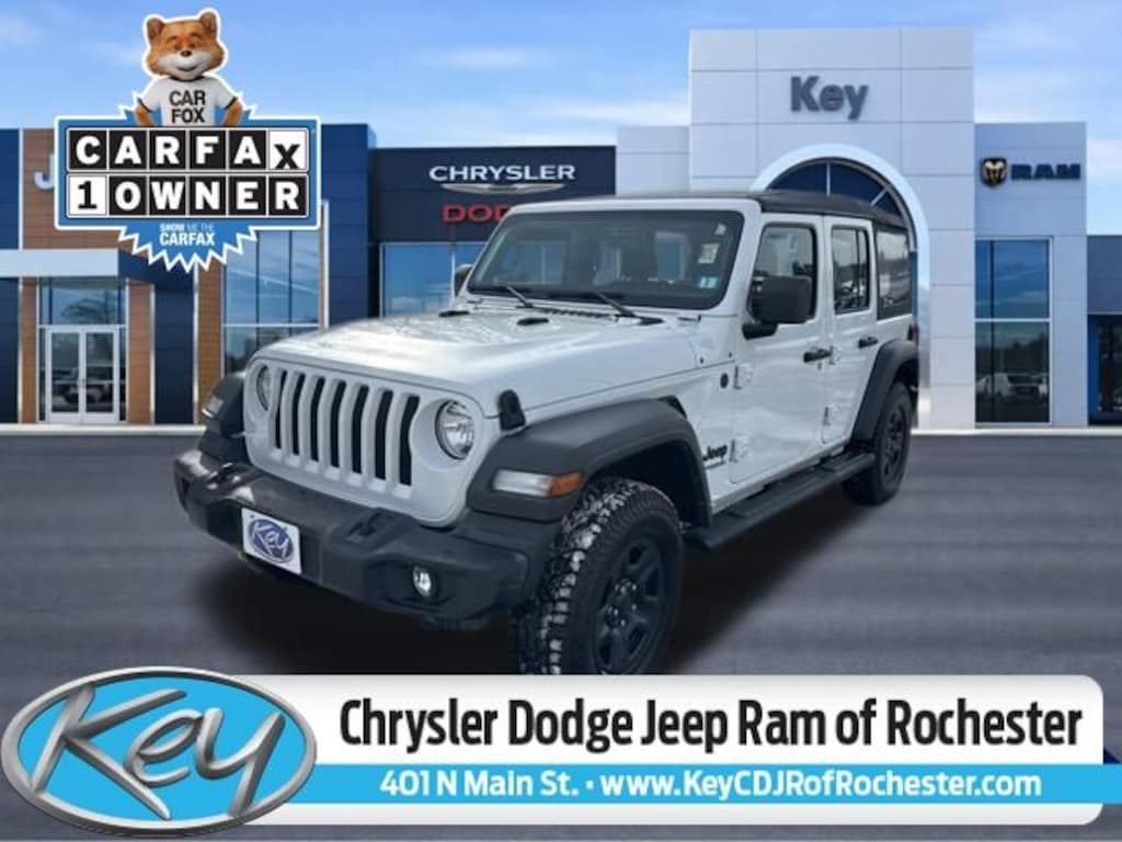 Key Chrysler Dodge Jeep Ram of Rochester is proud to present you with another True Market Priced Pre-Owned Vehicle. Transparent Pricing Of $ 25995 !! This 2022 Jeep Wrangler Unlimited Sport is loaded with the following Factory Options: Quick Order Package 23B Sport, 110 MPH Vehicle Max Speed Calibration, 3.45 Rear Axle Ratio, 4-Wheel Disc Brakes, 8 Speakers, ABS brakes, Air Conditioning, AM/FM radio, Apple CarPlay/Android Auto, Aux Battery, Brake assist, Cloth Low-Back Bucket Seats, Compass, Delay-off headlights, Driver door bin, Driver vanity mirror, Dual front impact airbags, Dual front side impact airbags, Electronic Stability Control, Emergency communication system: SiriusXM Guardian, Engine Oil Cooler, Front anti-roll bar, Front Bucket Seats, Front Center Armrest w/Storage, Front fog lights, Front reading lights, Integrated roll-over protection, Low tire pressure warning, Mopar Black Tubular Side Steps, Non-Lock Fuel Cap w/o Discriminator, Normal Duty Suspension, Occupant sensing airbag, Outside temperature display, ParkView Rear Back-Up Camera, Passenger door bin, Passenger vanity mirror, Power steering, Radio data system, Radio: Uconnect 4 w/7" Display, Rear anti-roll bar, Rear reading lights, Speed control, Split folding rear seat, Steering wheel mounted audio controls, Stop-Start Dual Battery System, Tachometer, Telescoping steering wheel, Tilt steering wheel, Traction control, Trip computer, Variably intermittent wipers, and Wheels: 17" x 7.5" Black Steel Styled!!
