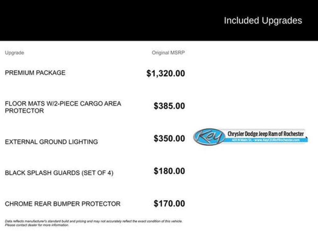 We make every effort to ensure accurate on-line pricing for our customers, however at times we may experience malfunctions or delays, causing pricing errors. Dealer is not responsible for pricing errors on-line. Documentation fee is $899. The advertised price does not include sales tax, vehicle registration fees, other fees required by law, finance charges and any documentation charges. Images, prices, and options shown, including vehicle color, trim, options, pricing and other specifications are subject to availability, incentive offerings, current pricing and credit worthiness. All advertised discounts include a $1,000 trade-in bonus built into the price. If you choose not to trade in a vehicle, the final purchase price will be $1,000 higher. Any trade-in must be presented at the time of purchase and is subject to appraisal.