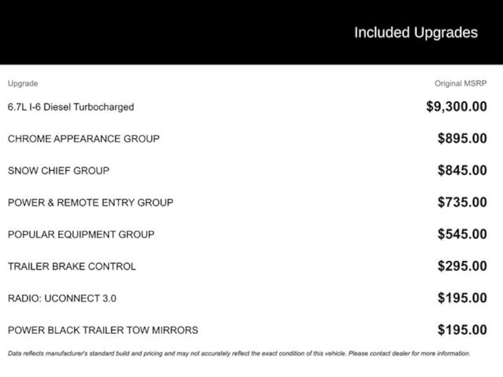 Key Chrysler Dodge Jeep Ram Newcastle is proud to present you with another True Market Priced Pre-Owned Vehicle. Transparent Pricing Of $ !! This 2018 Ram 2500 Tradesman is loaded with the following Factory Options: Chrome Appearance Group (Bright Front Bumper, Bright Grille, Bright Rear Bumper, and Wheels: 18" x 8.0" Steel Chrome Clad), Popular Equipment Group (1-Yr SiriusXM Radio Service, 40/20/40 Split Bench Seat, Carpet Floor Covering, Cloth 40/20/40 Bench Seat, For More Info, Call 800-643-2112, Front Armrest w/Cupholders, Front Floor Mats, Manual Adjust Seats, and SiriusXM Satellite Radio), Power & Remote Entry Group (Black Exterior Mirrors, Exterior Mirrors w/Heating Element, Fold-Away Power Heated Mirrors, Power Locks, Power Windows w/Front 1-Touch Down, Premium Vinyl Door Trim w/Map Pocket, and Remote Keyless Entry), Protection Group, Quick Order Package 2EA Tradesman, Snow Chief Group (Anti-Spin Differential Rear Axle, Clearance Lamps, and I/P Mounted Auxiliary Switches), 17" x 7.5" Steel Styled Wheels, 220 Amp Alternator, 4-Wheel Disc Brakes, 6 Speakers, ABS brakes, Air Conditioning, AM/FM radio, Auto-dimming Rear-View mirror, Brake assist, Center Hub, Delay-off headlights, Driver door bin, Dual front impact airbags, Dual front side impact airbags, Electronic Stability Control, Electronically Controlled Throttle, Exterior Mirrors Courtesy Lamps, Exterior Mirrors w/Supplemental Signals, Front anti-roll bar, Front Bumper Sight Shields, Front Center Armrest, Fully automatic headlights, Heavy Duty Vinyl 40/20/40 Split Bench Seat, Integrated Voice Command w/Bluetooth, LED Bed Lighting, Low tire pressure warning, Manufacturer's Statement of Origin, Media Hub (2 USB, AUX), Next Generation Engine Controller, Occupant sensing airbag, Overhead airbag, ParkView Rear Back-Up Camera, Passenger door bin, Power Black Trailer Tow Mirrors, Power steering, Radio data system, Radio: 3.0, Radio: Uconnect 3.0, Rear step bumper, Speed control, Tachometer, Tilt steering wheel, Tip Start, Traction control, Trailer Brake Control, Trailer Tow Mirrors, Variably intermittent wipers, and Voltmeter!!