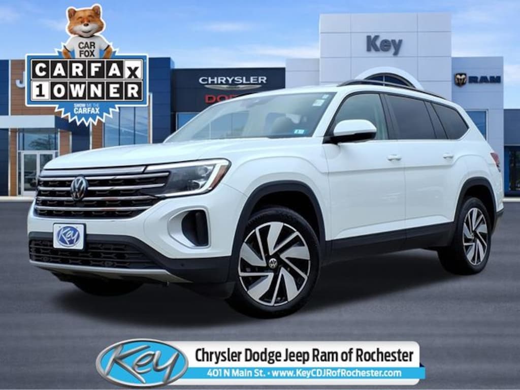 Key Chrysler Dodge Jeep Ram of Rochester is proud to present you with another True Market Priced Pre-Owned Vehicle. Transparent Pricing Of $ 29495 !! This 2024 Volkswagen Atlas 2.0T SE w/Technology is loaded with the following Factory Options: 4-Wheel Disc Brakes, ABS brakes, Four wheel independent suspension, Heated door mirrors, Heated steering wheel, Heated/Actively Ventilated Front Bucket Seats, and Speed-sensing steering 4-Wheel Disc Brakes, ABS brakes, Four wheel independent suspension, Heated door mirrors, Heated steering wheel, Heated/Actively Ventilated Front Bucket Seats, Speed-sensing steering, 3.60 Axle Ratio, 3rd row seats: split-bench, 6 Speakers, Air Conditioning, Alloy wheels, AM/FM radio: SiriusXM with 360L, Auto-dimming Rear-View mirror, Automatic temperature control, Brake assist, Bumpers: body-color, Compass, Delay-off headlights, Driver door bin, Driver vanity mirror, Dual front impact airbags, Dual front side impact airbags, Electronic Stability Control, Emergency communication system: VW Car-Net Safe & Secure 5-year, Exterior Parking Camera Rear, Front anti-roll bar, Front Bucket Seats, Front Center Armrest, Front dual zone A/C, Front fog lights, Front reading lights, Fully automatic headlights, Heated front seats, Illuminated entry, Low tire pressure warning, Occupant sensing airbag, Outside temperature display, Overhead airbag, Overhead console, Panic alarm, Passenger door bin, Passenger vanity mirror, Perforated V-Tex Leatherette Seating Surfaces, Power door mirrors, Power driver seat, Power Liftgate, Power steering, Power windows, Radio data system, Radio: MIB3 Composition Media, Rain sensing wipers, Rear air conditioning, Rear anti-roll bar, Rear reading lights, Rear seat center armrest, Rear window defroster, Rear window wiper, Remote keyless entry, Security system, Speed control, Split folding rear seat, Spoiler, Standard Suspension, Steering wheel mounted audio controls, Tachometer, Telescoping steering wheel, Tilt steering wheel, Traction control, Trip computer, Turn signal indicator mirrors, Variably intermittent wipers, Ventilated front seats, and Wheels: 20" 2-Tone Machined Alloy!!